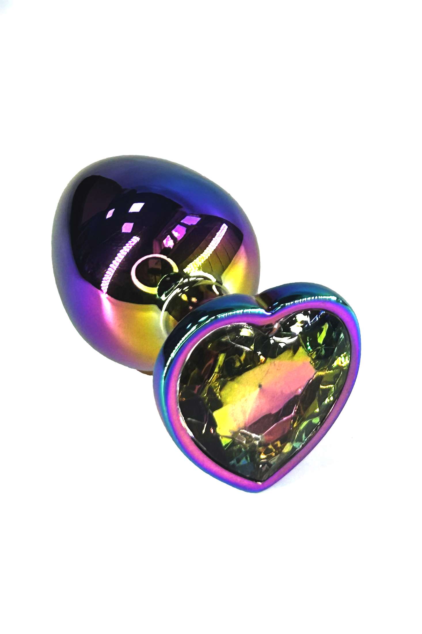 Анальная пробка из алюминия с кристаллом в форме сердца цвета неохром (Large)