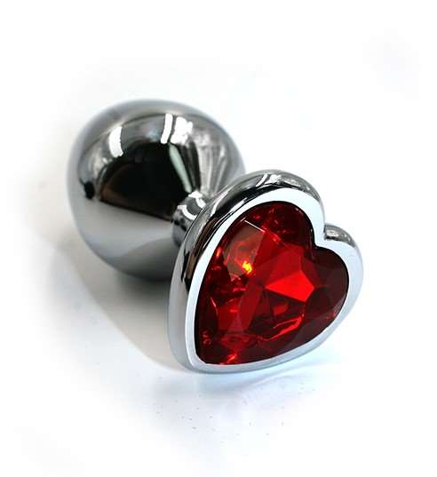 Анальная пробка из аллюминия с красным кристаллом в форме сердца