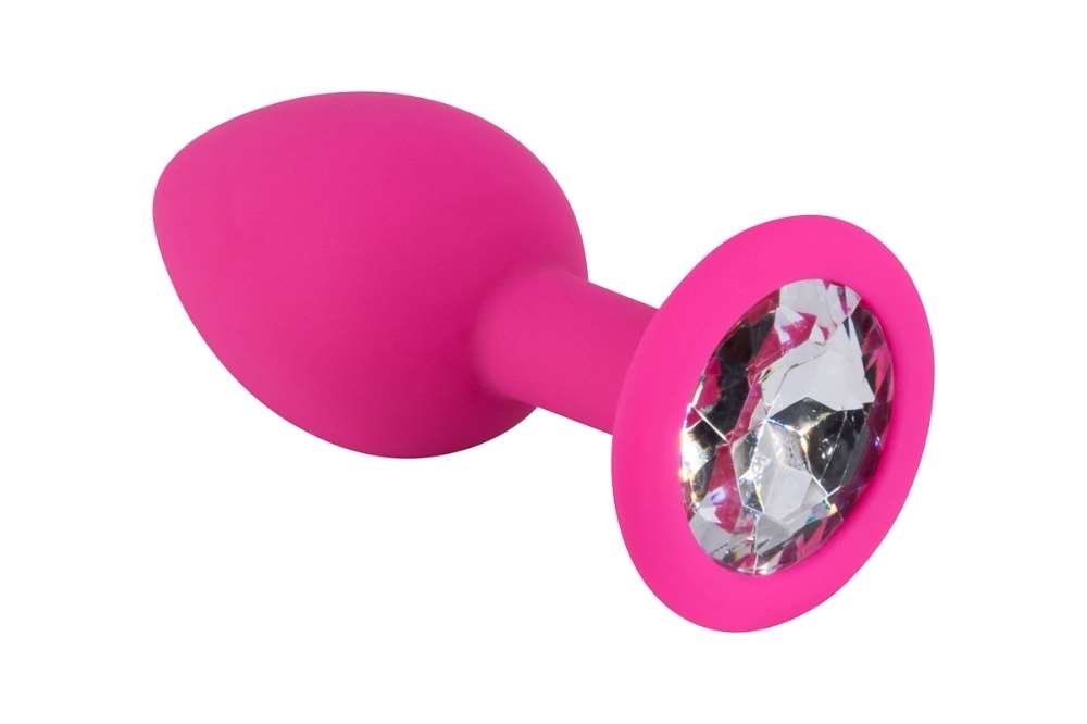 Анальная пробка розовая с прозрачным стразом 3310-02