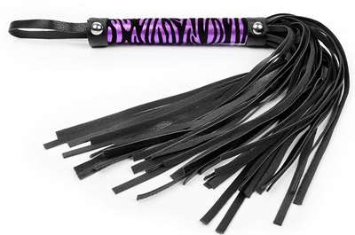Черная многохвостовая плеть с круглой фиолетовой ручкой-зеброй - 39 см.