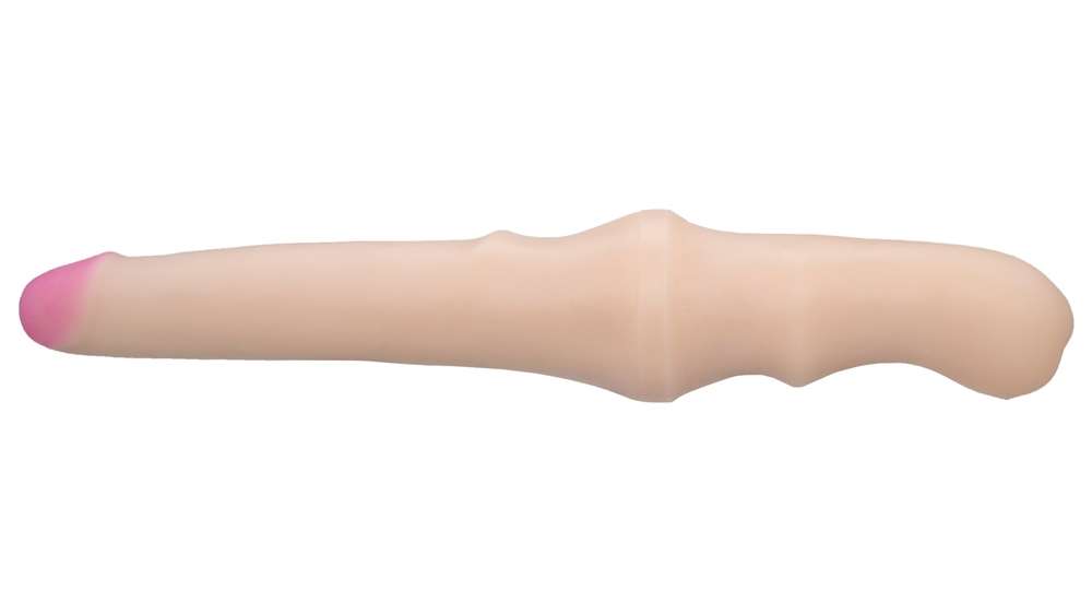 Гибкий двухсторонний фаллоимитатор «для двоих» изготовлен из нескольких слоев материала «НЕОСКИН».