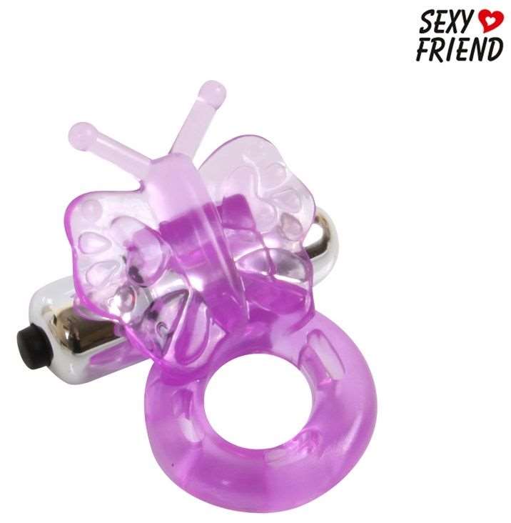 Фиолетовое эрекционное виброкольцо-бабочка с вибропулей