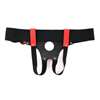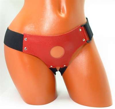 Трусики выполнены из натуральной кожи красного цвета с элементами из черных эластичных резинок, надежно фиксирующих изделие на теле. Трусики-джоки обеспечивают доступ к интимным зонам. Размер удобно регулируется, подойдет на 42-46. Максимально комфортный аксессуар разнообразит любую БДСМ игру. Ширина резинки на поясе - 5 см. Диаметр отверстия - 2.5 см.