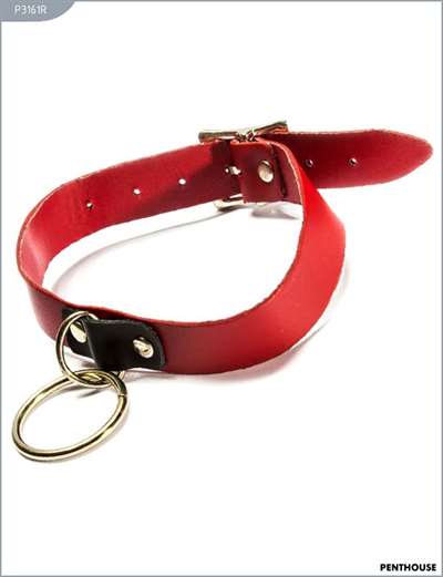 Ошейник красный с кольцом для поводка. Стильный аксессуар для ваших эротических игр. Размер регулируется.