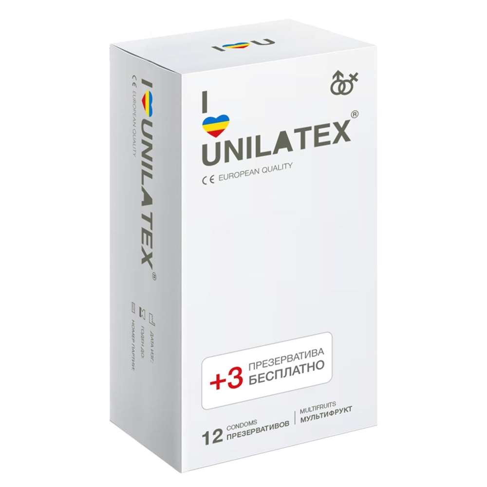 Купить Разноцветные ароматизированные презервативы Unilatex Multifruit - 12 шт. + 3 шт. в подарок