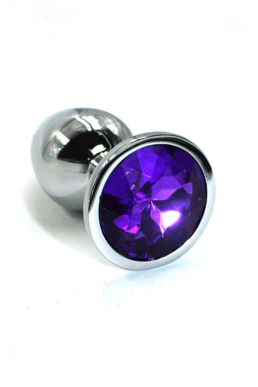 Серебристая анальная пробка из алюминия с темно-фиолетовым кристаллом (Small)