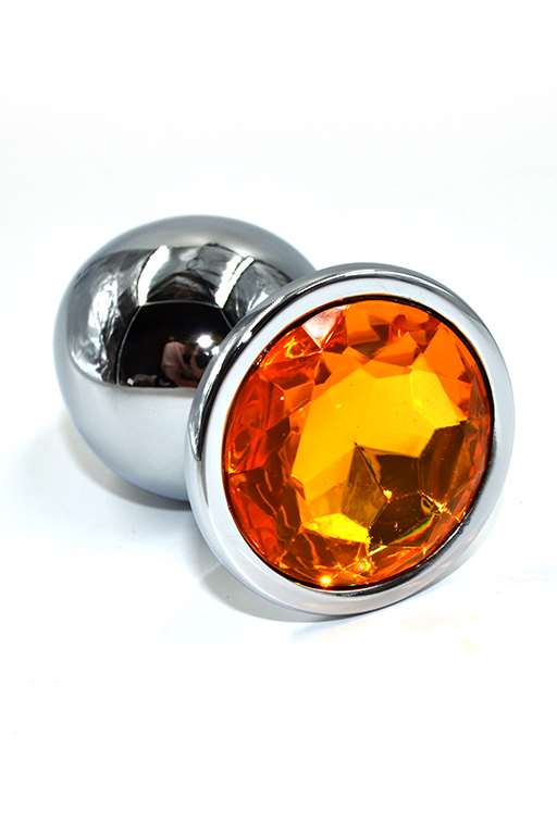 Серебристая анальная пробка с желтым кристаллом (Small)