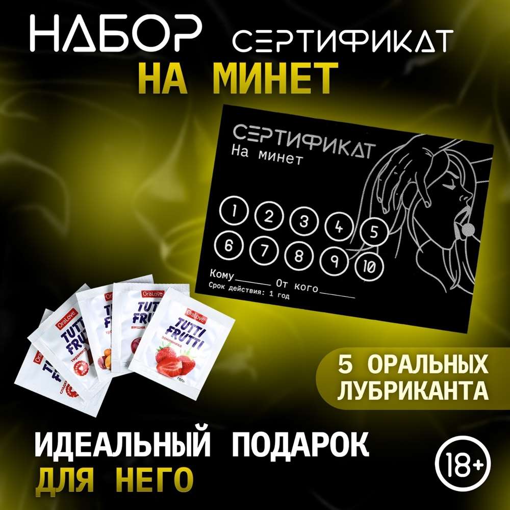 Не банальный подарок для двоих, для самого любимого. В наборе сертификат со скретч слоем и 5 штук оральных лубрикантов.
