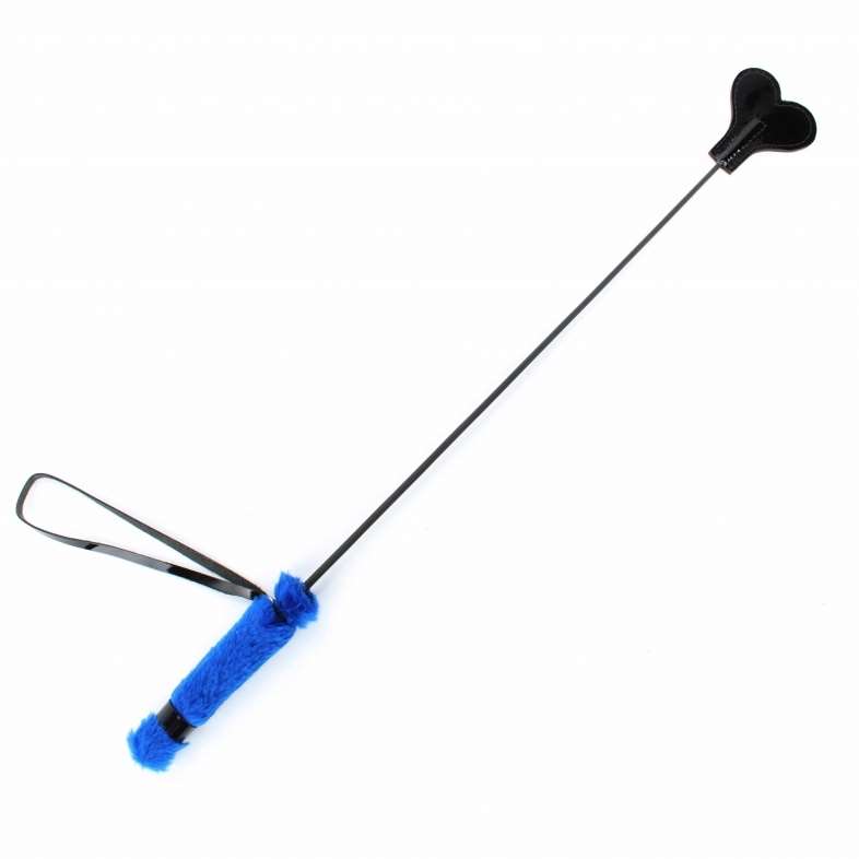 Стек с ручкой из синего эко-меха, перетянутой лаковыми кожаными пряжками, отлично подойдет для игр в стиле БДСМ Light. Длина ручки 14см,сердца 8см, общая длина изделия 61см. На рукоятке расположена петелька длиной 18см. Наконечник выполнен из натуральной лаковой кожи черного цвета в форме сердечка. Мягкий и гибкий, он сделает подчинение максимально приятным.